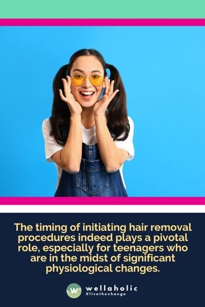 I learned that it’s best to wait until hair growth has reached a more consistent stage before beginning any hair removal procedures. For most teenagers, this usually happens a few years after puberty begins, once hormones start to balance out. By waiting, the treatments are more likely to be effective, and you may need fewer sessions in the long run.