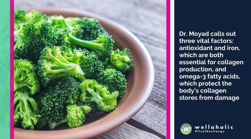 Certain nutrients can kick-start the body’s production of natural collagen and maximize the effects of the collagen you get from foods or supplements. Three vital factors are antioxidants and iron, which are both essential for collagen production, and omega-3 fatty acids, which protect the body’s collagen stores from damage.