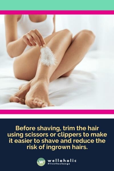 Before shaving, trim the hair using scissors or clippers to make it easier to shave and reduce the risk of ingrown hairs.