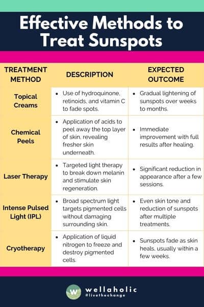 | Sunspot reduction | 2-4 weeks | Up to 75% fading |