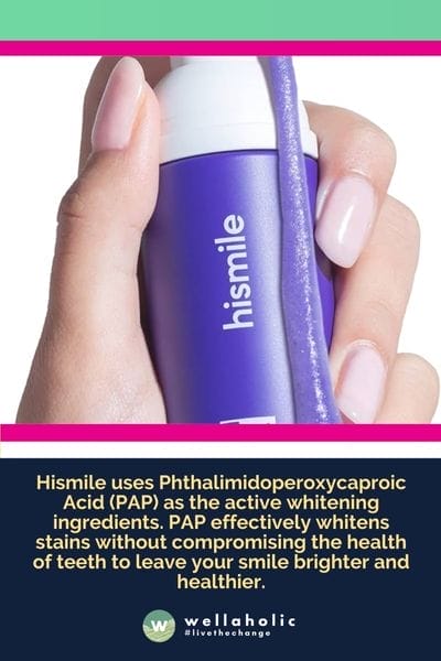 Hismile uses Phthalimidoperoxycaproic Acid (PAP) as the active whitening ingredients. PAP effectively whitens stains without compromising the health of teeth to leave your smile brighter and healthier.
