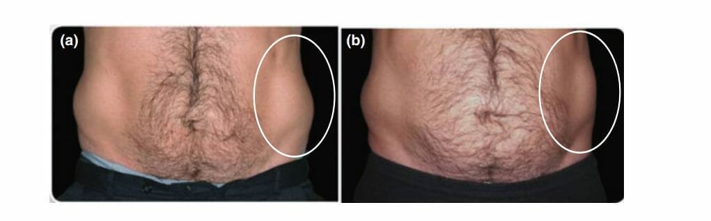 - Riopelle’s Study: Measured 5 male participants and reported an 18.2% fat layer reduction at 6 months post-treatment.