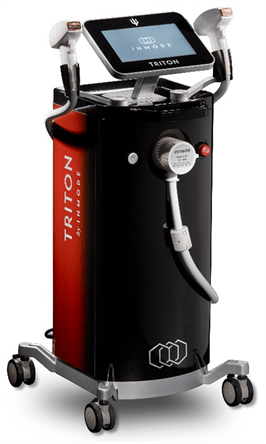 The InMode Triton/DiolazeXL device (InMode MD Ltd., Israel) is designed to deliver optical energy to the skin via a pre-cooled sapphire block. Good optical contact between the sapphire block and the skin is achieved by using water-based gel. The device provides individual adjustment of light fluence and pulse duration to achieve maximum efficiency and safety for each patient. The handpiece has integrated skin cooling to enhance safety and comfort of the treatment.