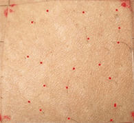 Photos of the treatment areas were taken at baseline and at the 6 month follow-up visit in a reproducible manner. The hair was trimmed to 1 – 3 mm length and the area before trimming as well as the trimmed area was photographed. Hair counts were performed by marking visible hairs on photographs of the subjects’ treatment area. Figure 4 demonstrates counting examples.