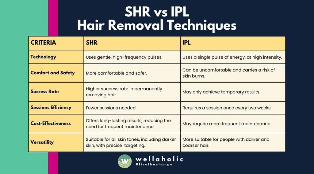 - 😊 Comfort: SHR is nearly painless, while IPL can cause discomfort